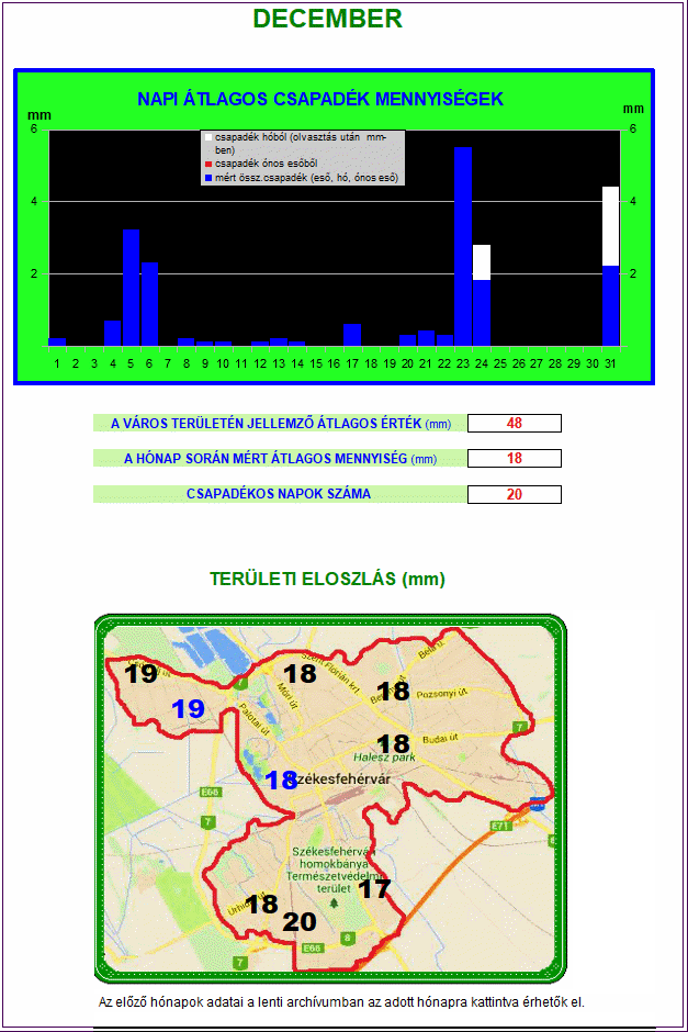 A diagramokon megjelenített értékek a város 10 különböző pontján mért csapadék mennyiségek átlagai.