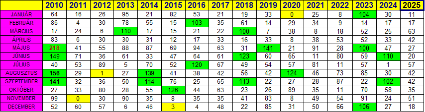 Az egyes hónapokról a lenti archívumban további adatok érhetőek el.